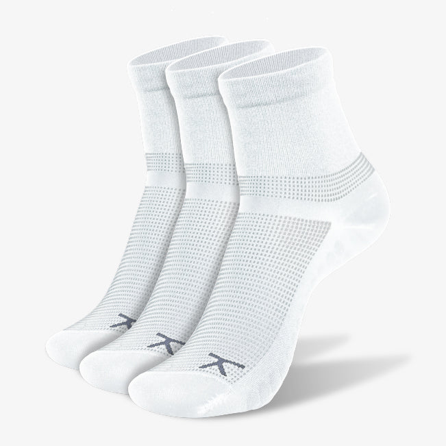 I love that these socks have a wider toe box. I only wish they came in more personal sizes instead of a large grouping of sizes together. Also, they could be a bit whiter, they kind of look like they were washed with dark socks when brand new.